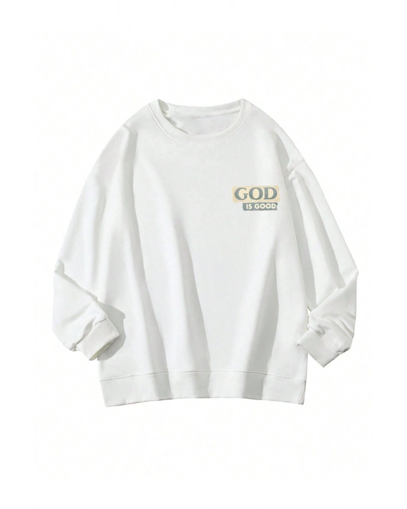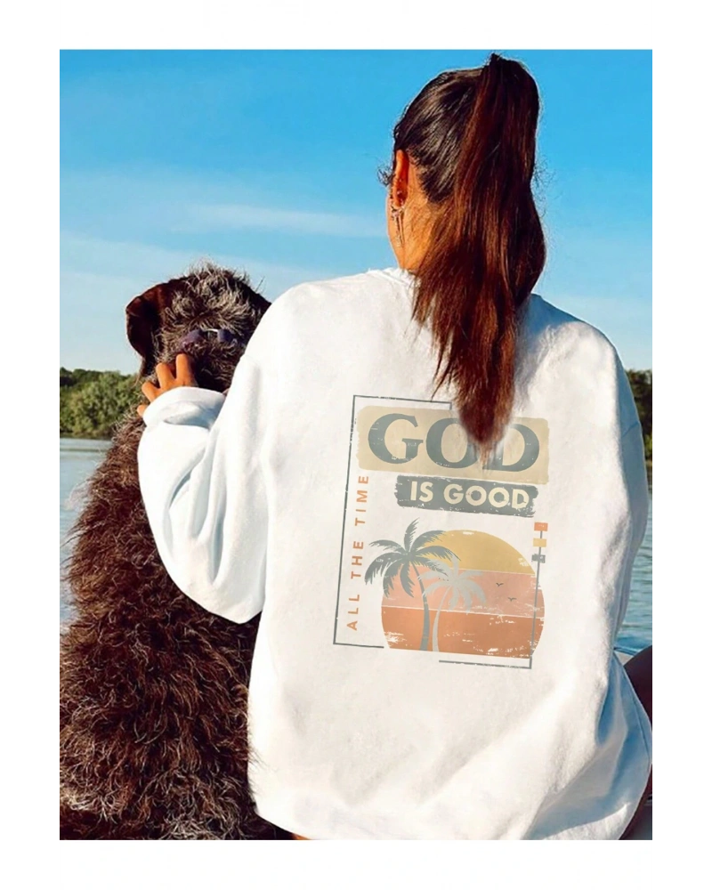 Tropikal ve Slogan Grafikli Düşük Sweat Beyaz