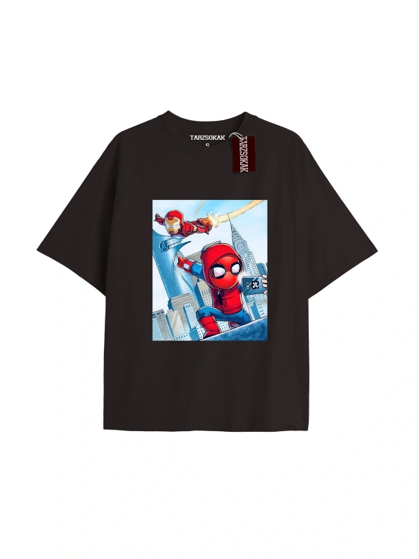Unısex Kadın Erkek Spıderman Örümcek Adam Tasarım Baskılı % 100 Pamuk T-shirt