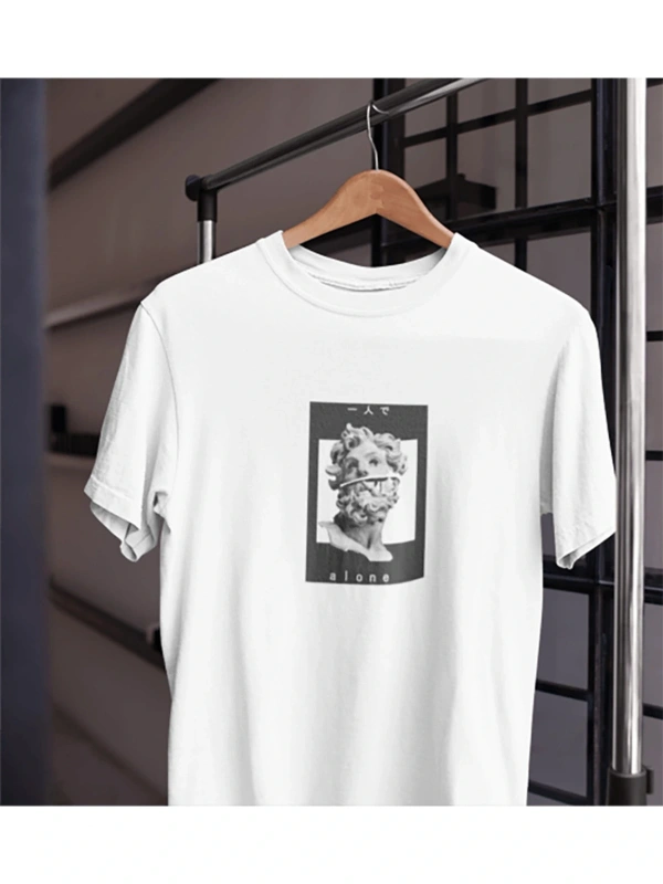 Unısex Kadın Erkek Alone Yalnız Heykel Mitoloji Dönem Eski Nesne%100 Pamuk Siyah Beyaz T-shirt