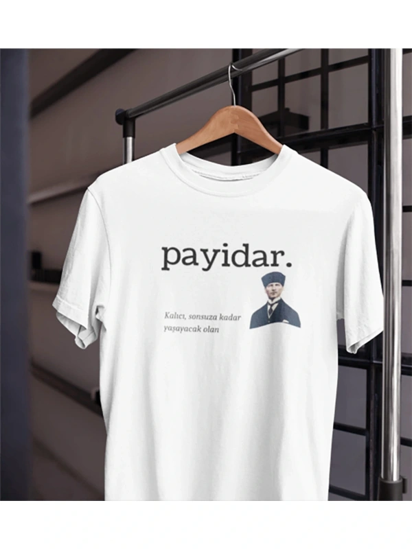 Unısex Kadın Erkek Atam Atatürk Payidar Kalıcı Sonsuz Siyah Beyaz Tasarım Baskılı %100 Pamuk T-shirt