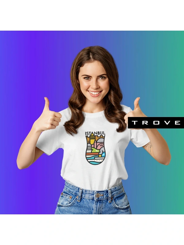 Unısex Kadın Erkek Hediye Istanbul Yedi Tepe Baskılı Çay Bardak % 100 Pamuk Tasarım T-shirt