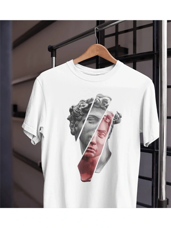 Unısex Kadın Erkek Mitoloji Heykel Rönesans Siyah Beyaz Tasarım Baskılı %100 Pamuk T-shirt
