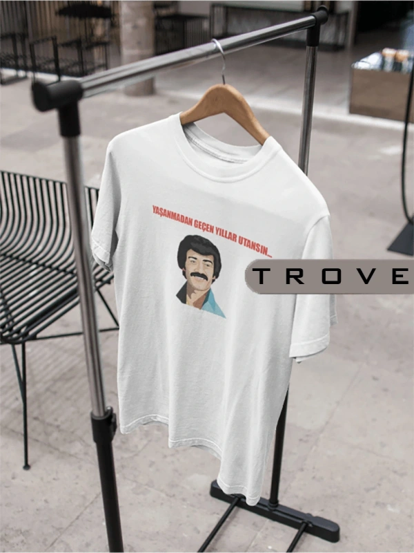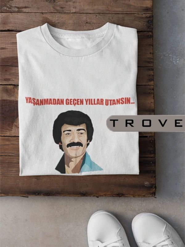 Unısex Kadın Erkek Müslüm Gürses Yıllar Utansın %100 Pamuk Baskılı Siyah Beyaz T-shirt