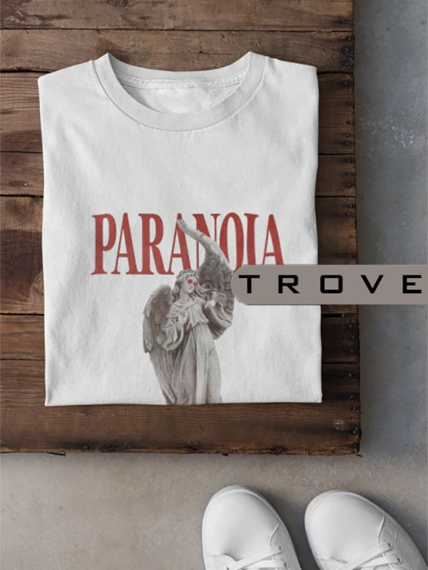 Unısex Kadın Erkek Paranoıa %100 Pamuk Baskılı Siyah Beyaz T-shirt