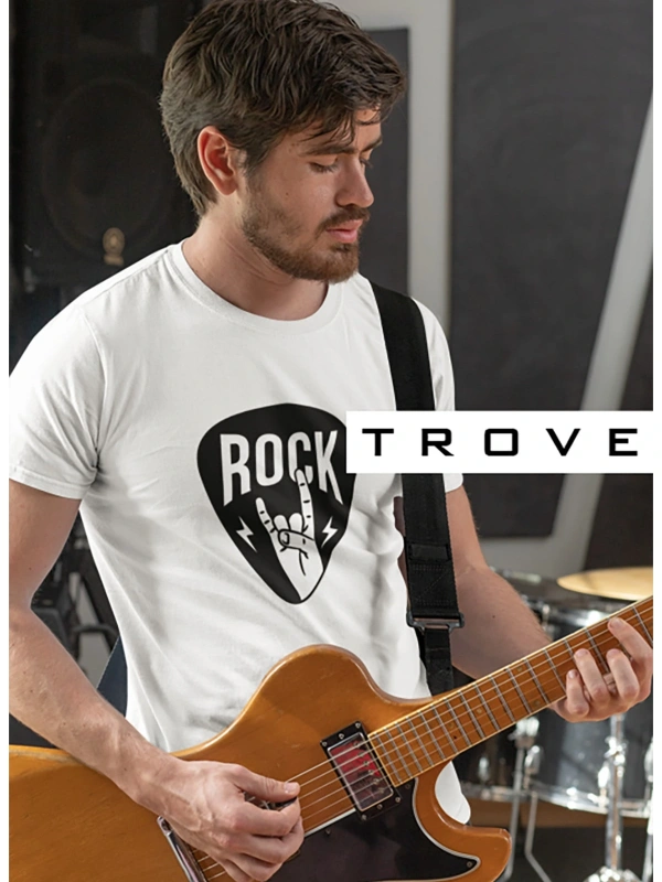 Unısex Kadın Erkek Rock'n Roll Gitar Pena Tasarım Baskılı % 100 Pamuk T-shirt