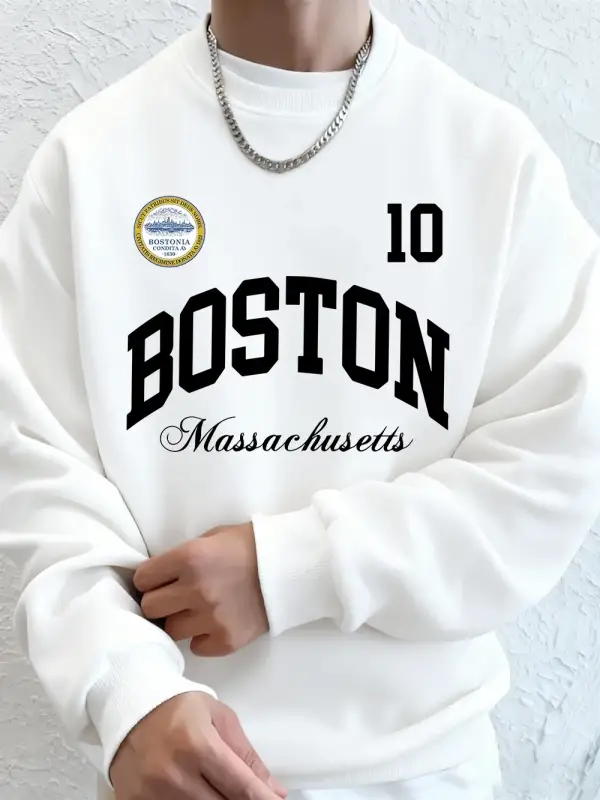 Boston Massachusetts Baskılı Erkek Tişörtü Sonbahar Gevşek Kapüşonlu Üst Hip Hop Bisiklet Yak