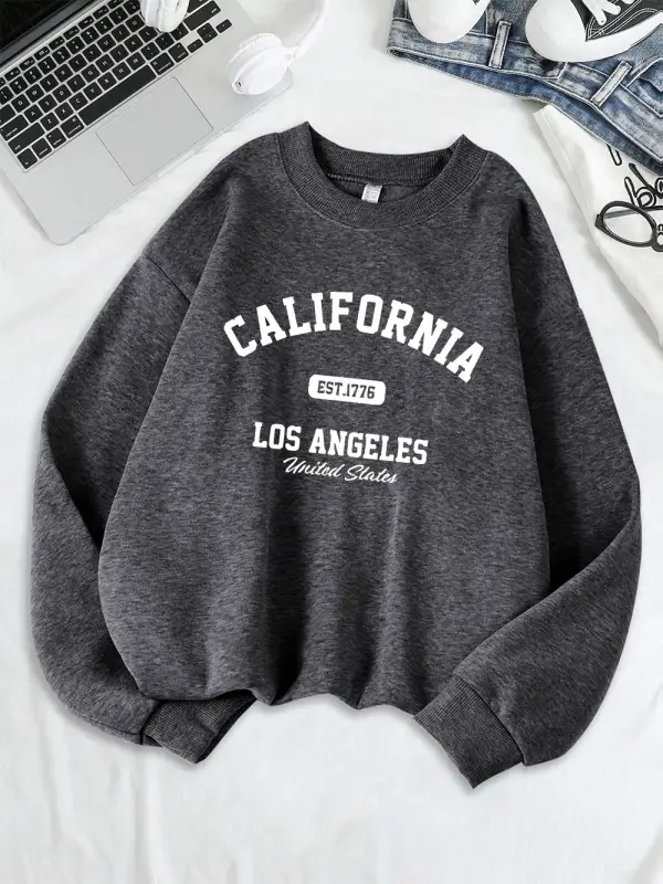 California Los Angeles Est 1776 Baskılar Tişörtü Kadın Bisiklet Yaka Temelleri Kapüşonlular G