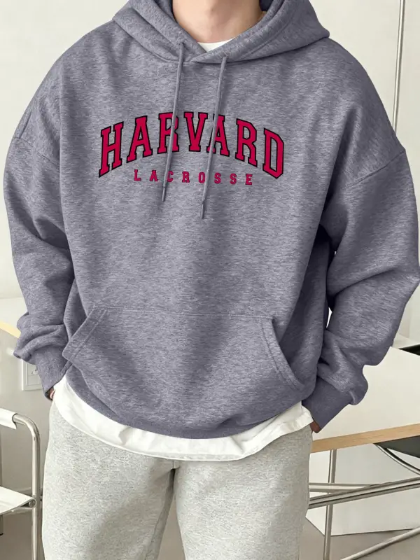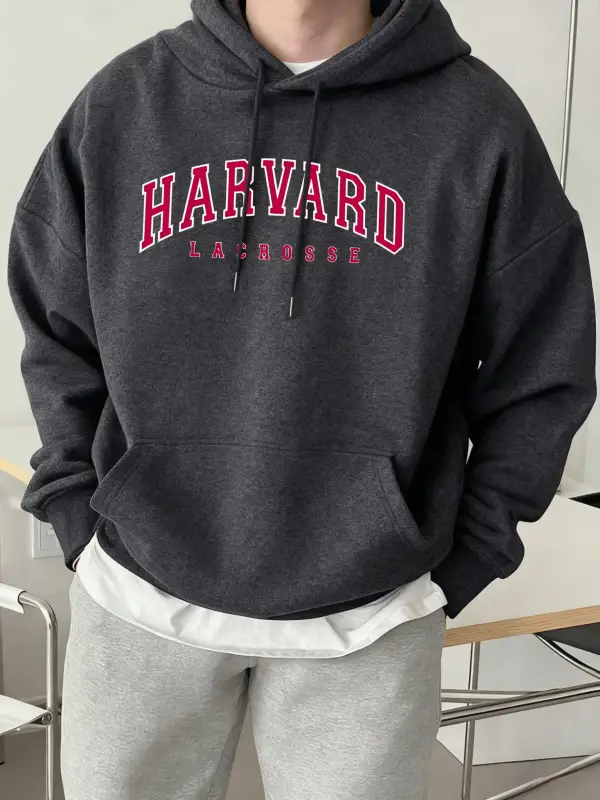 Harvard Lacrosse Baskılı Kapüşonlu Üst Erkek Yumuşak Moda Tişörtü Spor Rahat Sokak Giysisi Te