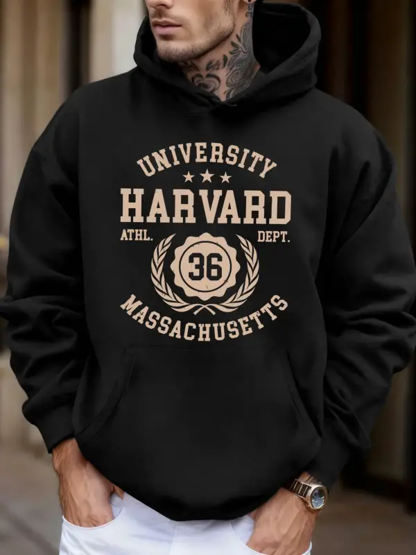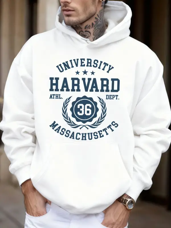 Üniversite Harvard Massachusetts Baskı Sonbahar Yumuşak Kapüşonlu Üst Erkek Polar Gevşek Kaza