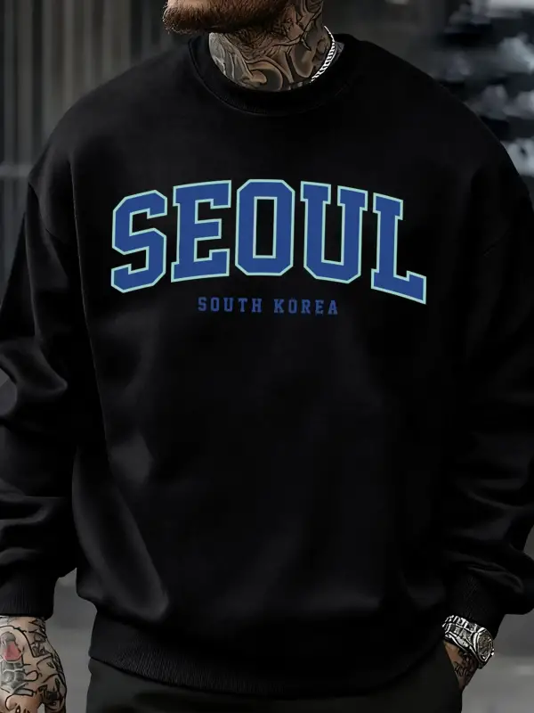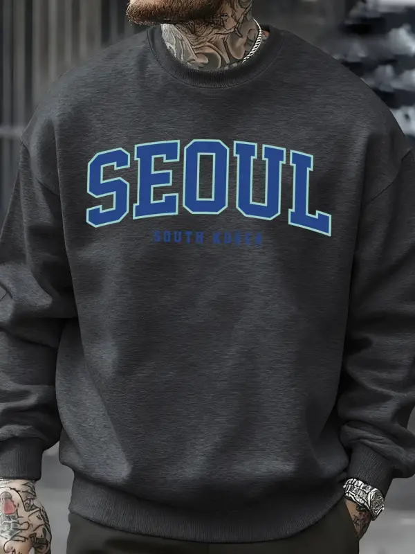 New York City Mektup Göz Alıcı Baskılı Erkek Tişörtü Çok Renkli Kazak Günlük Moda Spor Giyim