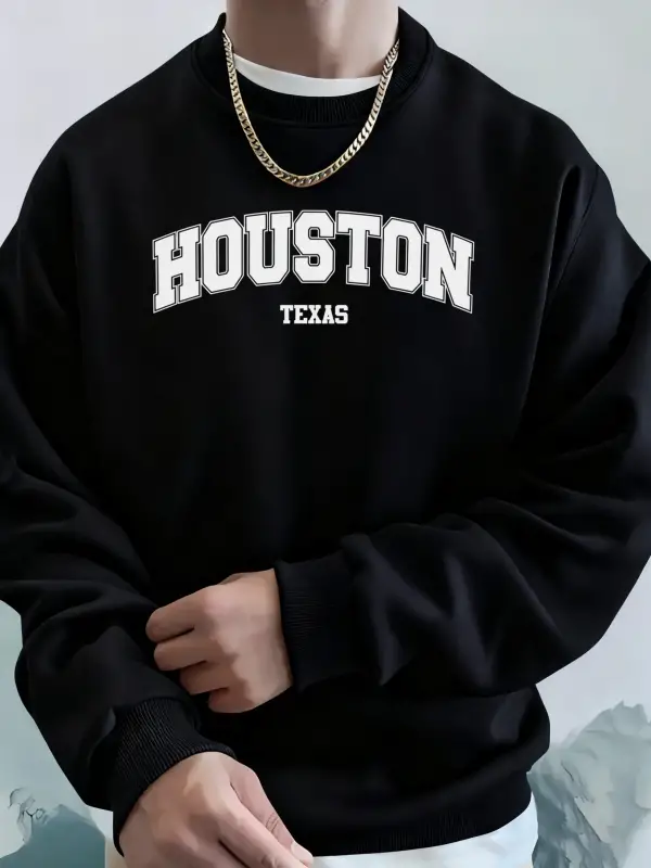 Houston Texas Sanat Mektup Baskı Erkek Sonbahar Sıcak Tişörtü Rahat Moda Kapşonlu Spor Uzun K