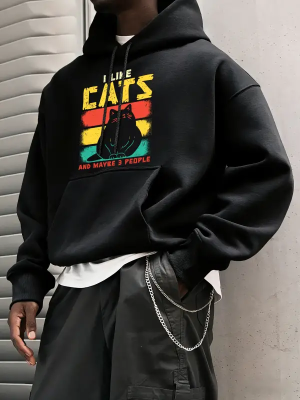 Komik Sevimli Kedi Eğlenceli Aşıklar Kedileri Seviyorum Baskılı Erkekler Hoody Moda Gevşek Ka