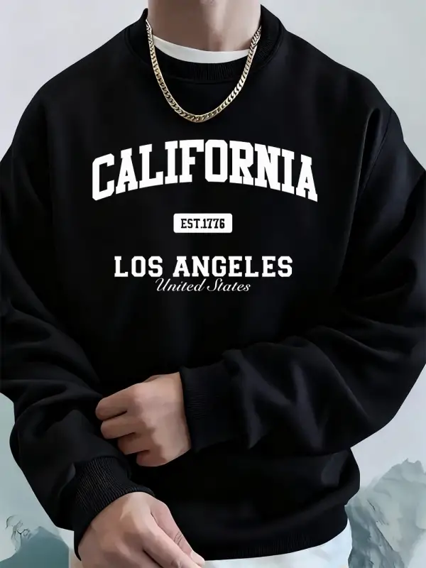 Kaliforniya Los Angeles Baskı Erkek Tişörtü Kış Bisiklet Yaka Kapüşonlular Sokak Polar Sıcak