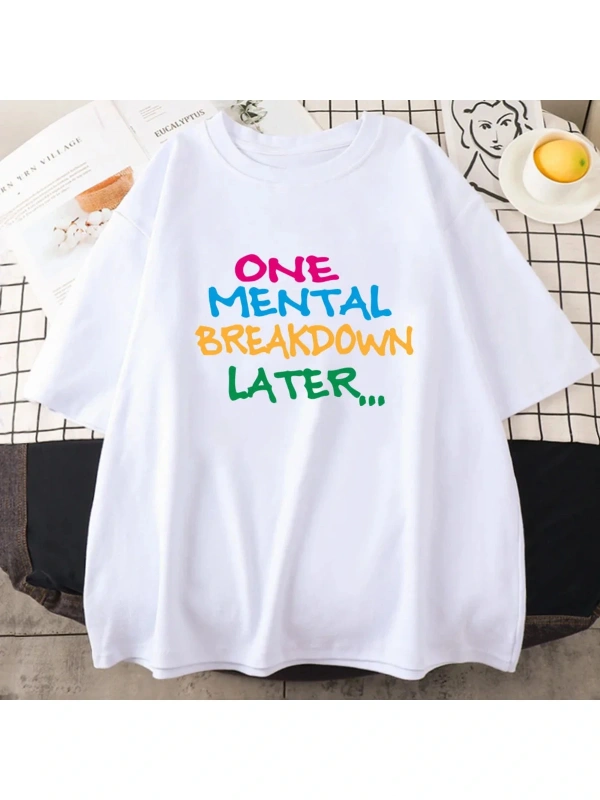 Beyaz Mektup baskılı bir zihinsel arıza sonra grafik yaz Streetwear Hip Hop ra