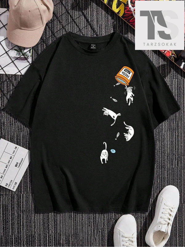 Kadın Kayık Yaka 14 Baskılı Oversize %100 Pamuk
