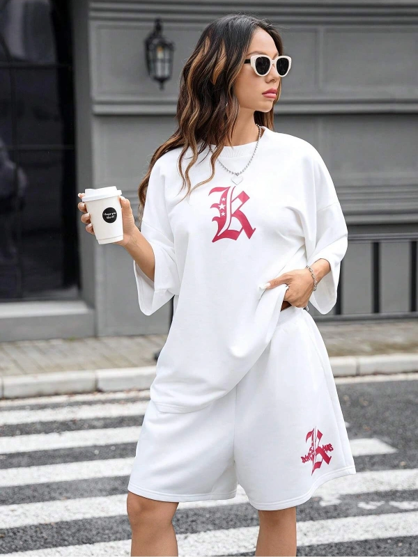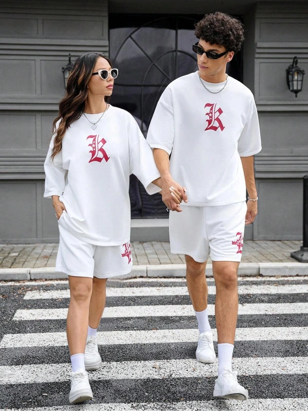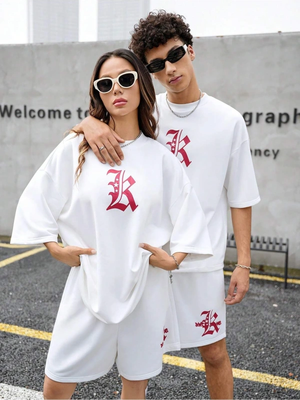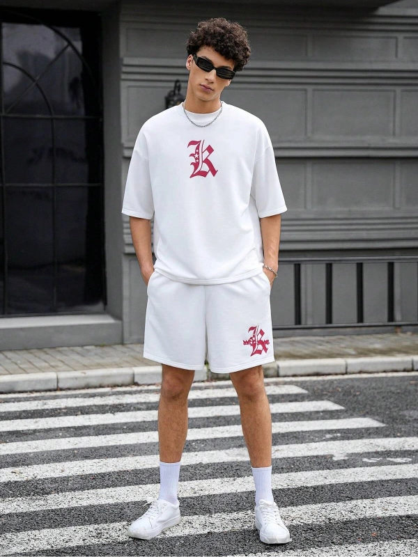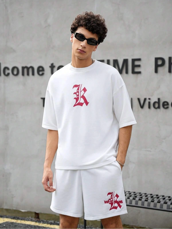 Manfinity Homme Erkek Basit Harfli Grafik Tişört ve Şort Takımı