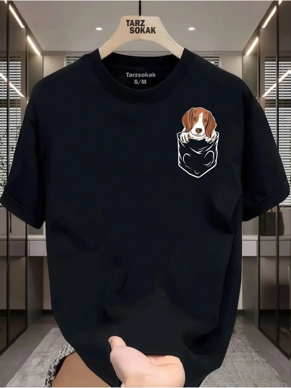 UNİSEX Kod 2 Köpek Minimalis Baskı T-shirt