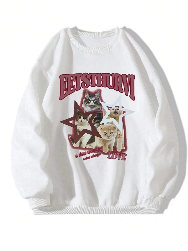 Beyaz TGCF Hualian Kedi Baskılı Cennet Yetkilileri Nimet Unisex Uzun