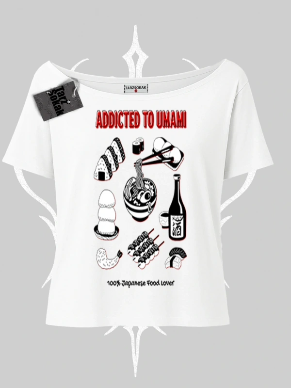 Kayık Yaka Tshirt Japon Mutfağı Umami Temalı Baskılı
