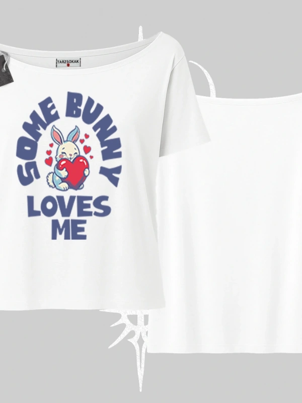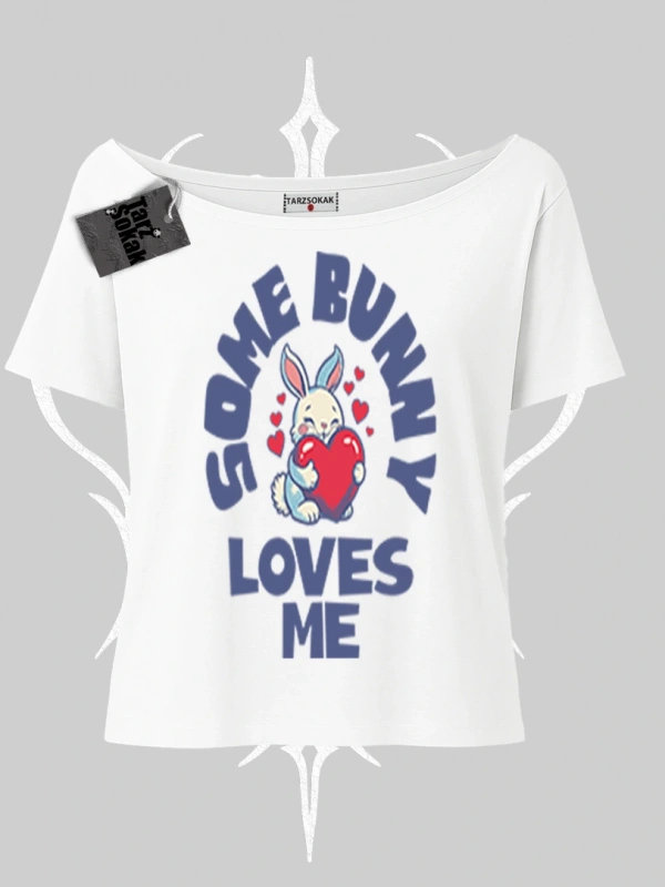 Kayık Yaka Tshirt Sevimli Tavşan Some Bunny Loves Me Baskılı