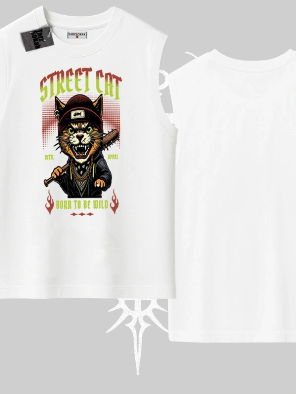 Street Cat Kedi Baskılı Kolsuz Tshirt