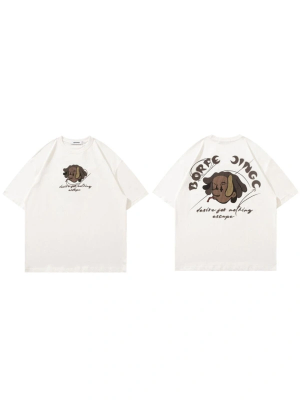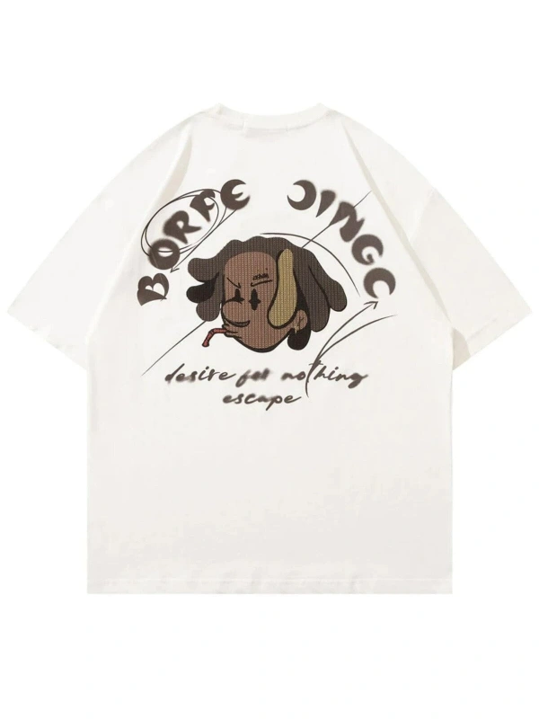 Erkek Beyaz Protection Dragon Baskılı Oversize Biziklet Yaka Tişört