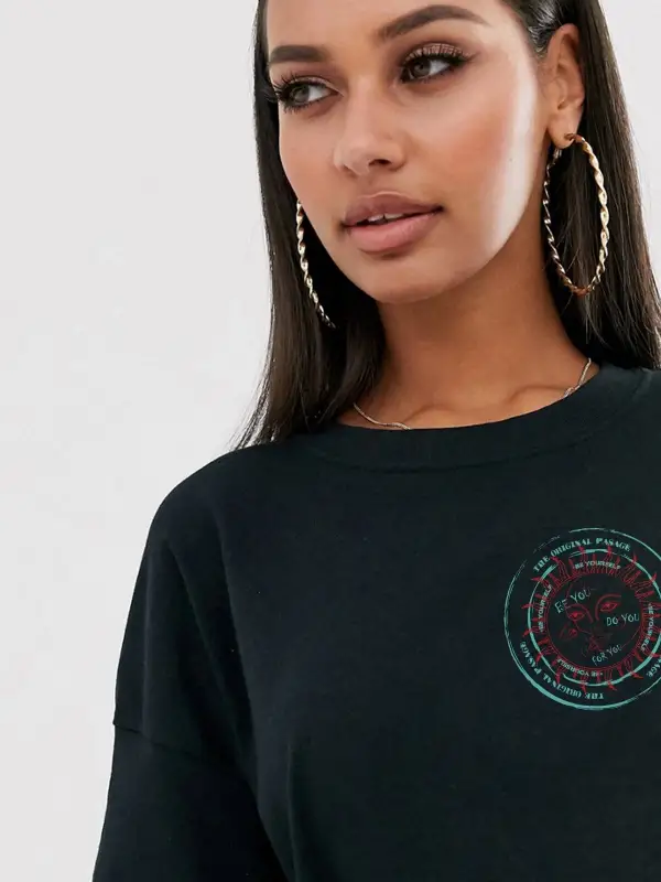 Kayık Yaka 76 Baskılı Oversize %100 Pamuk