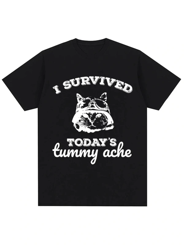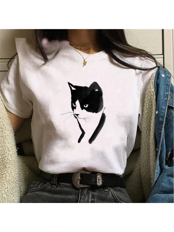 Beyaz Siyah Kedi Komik Meme Grafik Tshirt Yaz Vintage Güzellik T