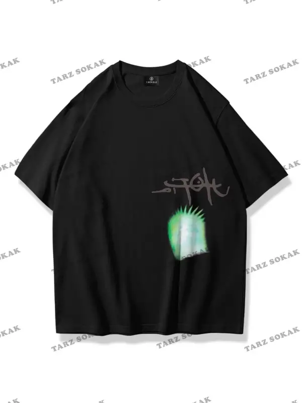 KOD Trend Street Life Erkek Karikatür ve Mektup Grafikli Tişört