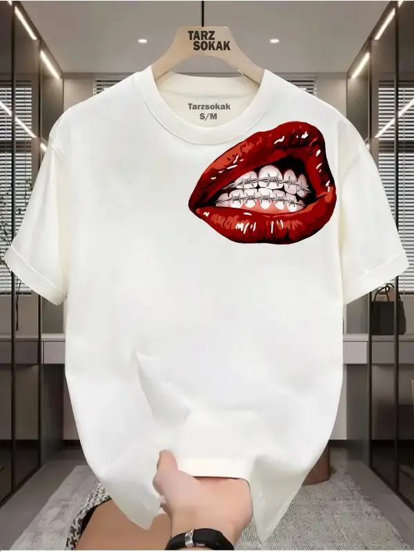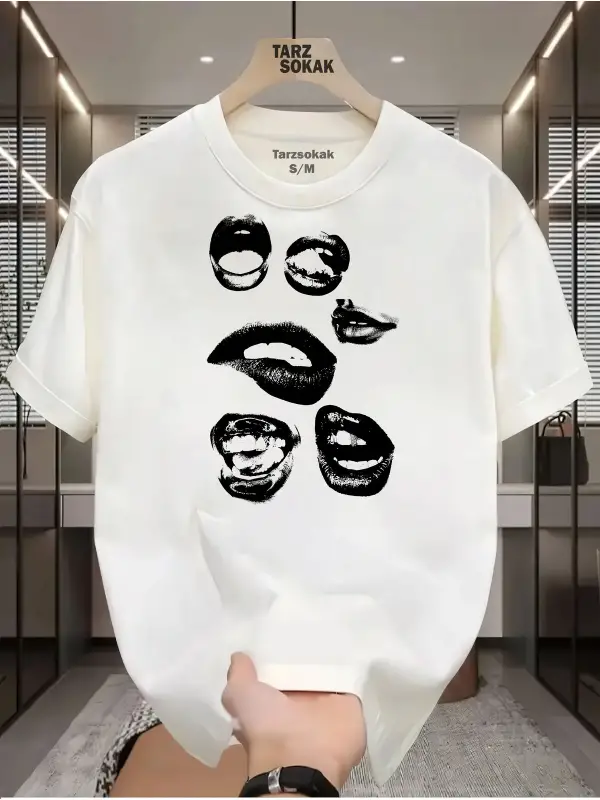Oversize Heykel Baskı Pamuklu Siyah-beyaz-indigo Renk Unisex T-shirt