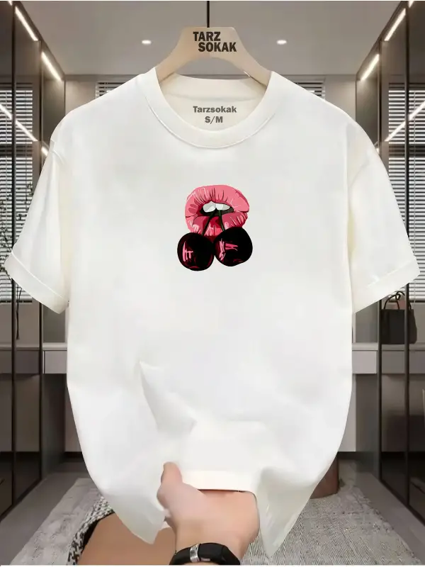 Unique----Unisex Kadın Erkek Mickey Mous Özel Baskılı Oversize Pamuk Penye T-shirt Beyaz