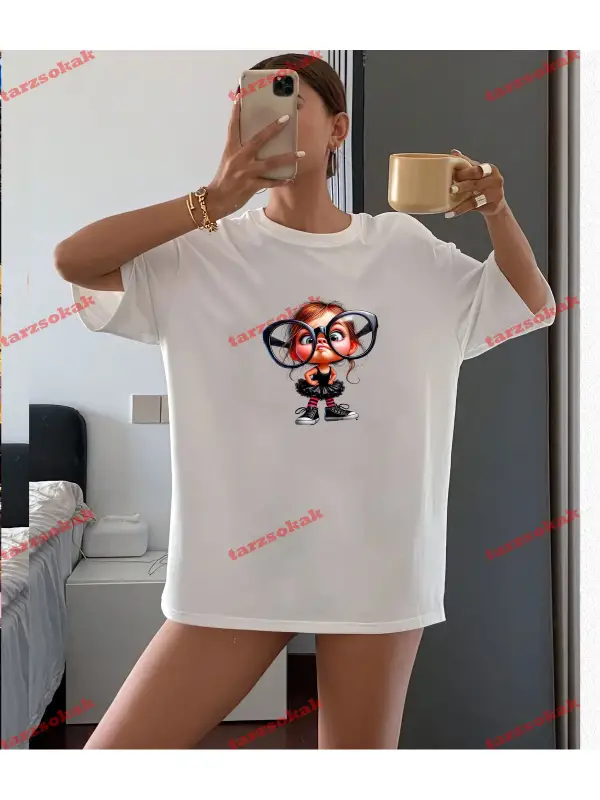 Ördek Baskılı Oversize Kalıp Unisex T-shirt