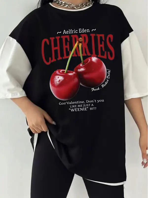 Çift Renk Red Cherries Baskılı Unisex Tshirt