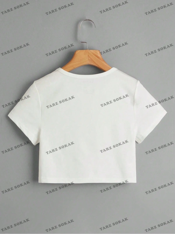 Crop CKOD-232913 Harf Grafikli Kırpma
