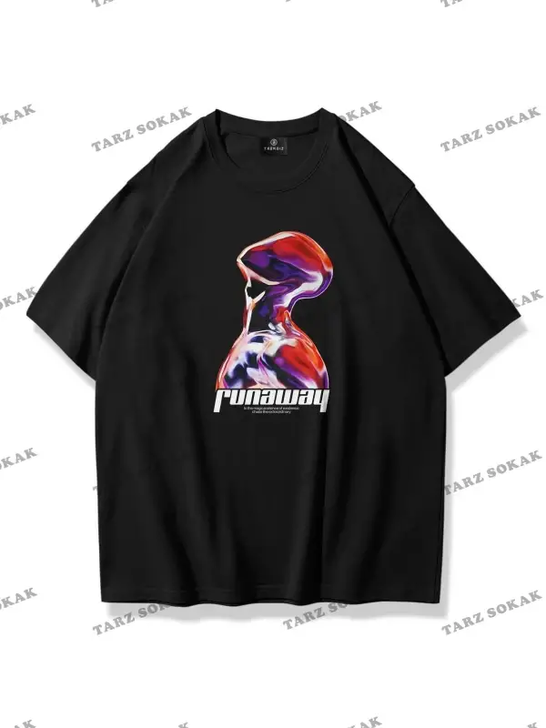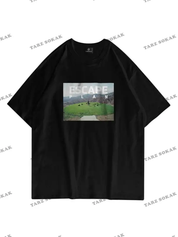 KOD Trend Erkek Baskılı Bol Düşük Omuz Tişört