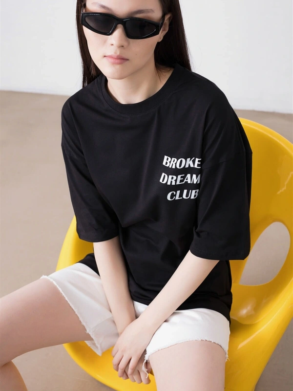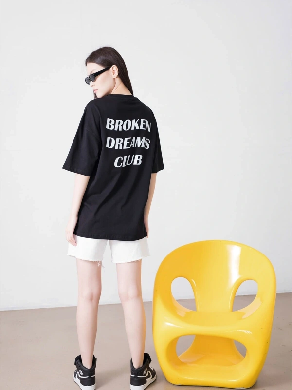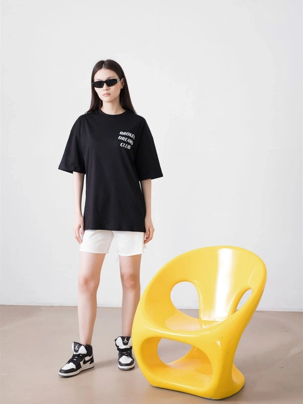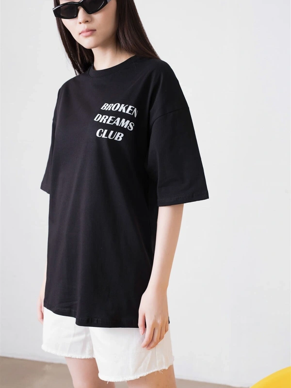 Kadın Siyah Cool Gırl Oversize Bisiklet Yaka Tshirt