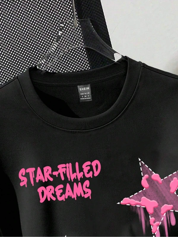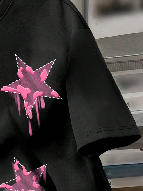 Yıldız Grafikli Yuvarlak Yaka Kısa Kollu Tişört