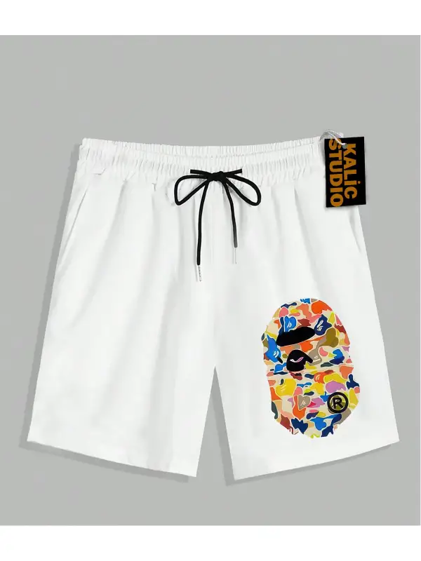 UNİSEX Bay Bape Desenli Beyaz Yazlık ŞORT