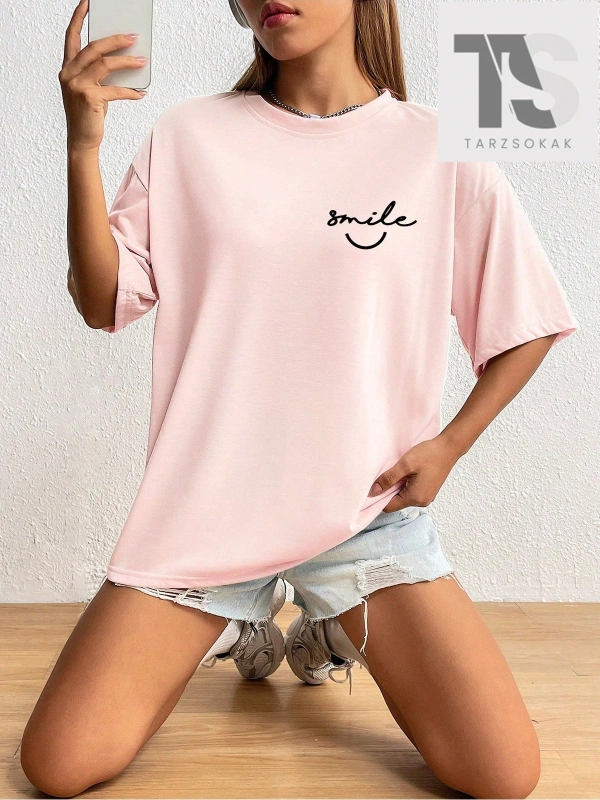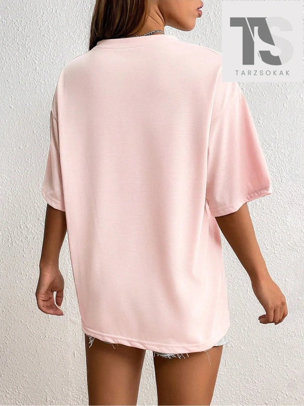 Kadın Oversize Dökümlü Tok Kumaş Tişört