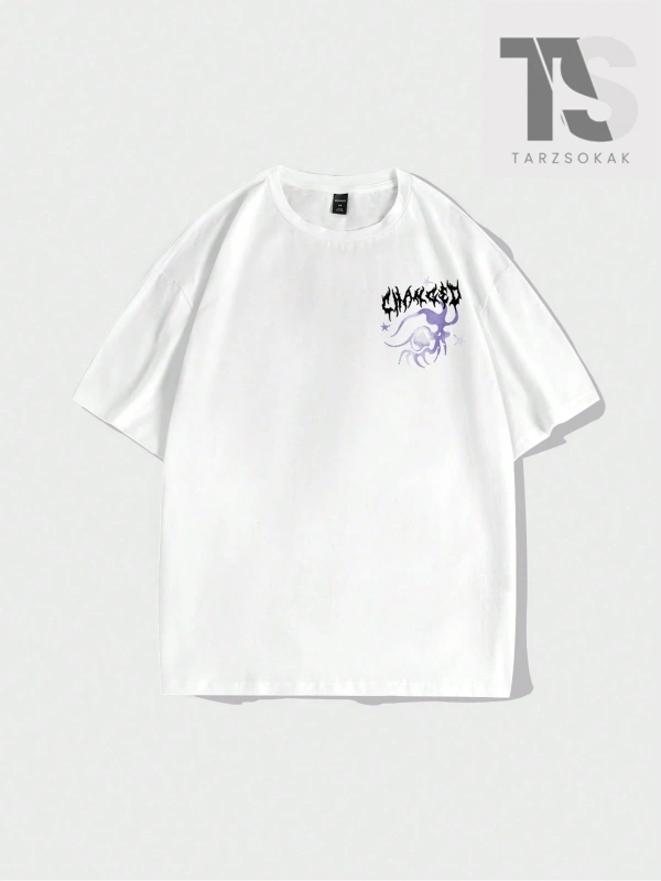 VI Arcane Baskılı Oversize Unisex Beyaz