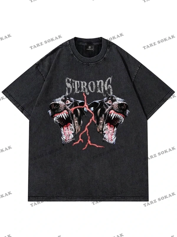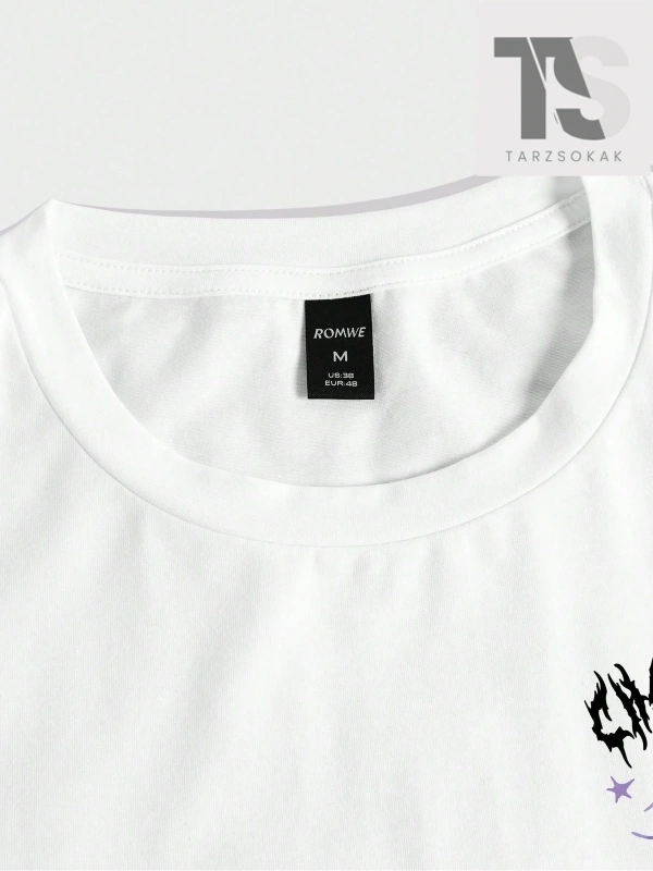 KOD Trend Street Life Erkek Slogan ve İskelet Baskı Damla Omuz Tişört