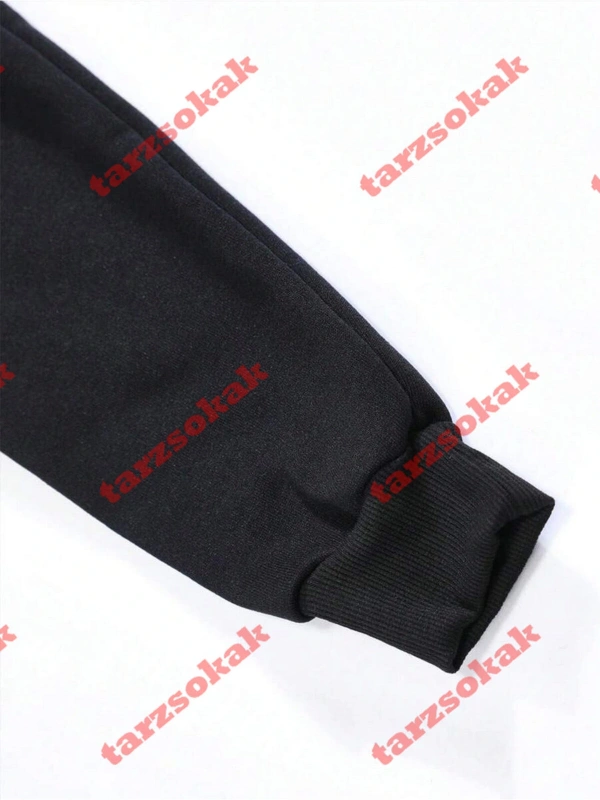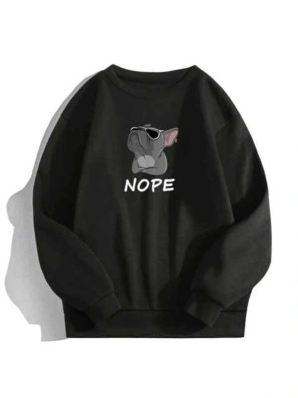 Siyah Oversize Kapşonsuz 0 Yaka Bulldog Baskılı Pamuklu Sweatshirt
