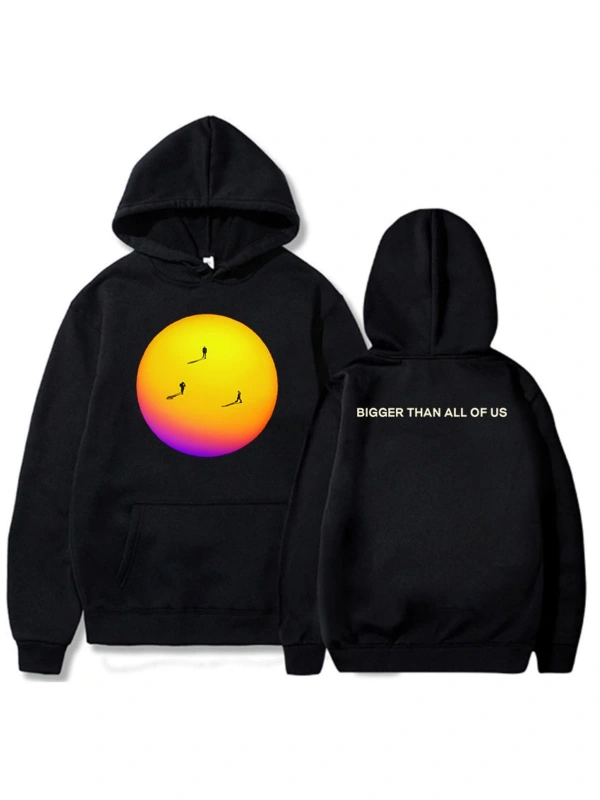 Oversize Unisex Siyah Yaşam Çiçeği Hoodie