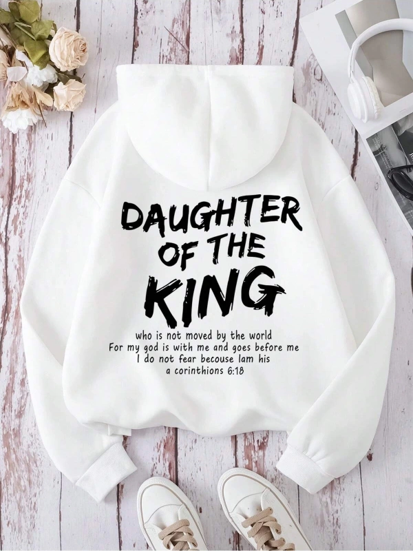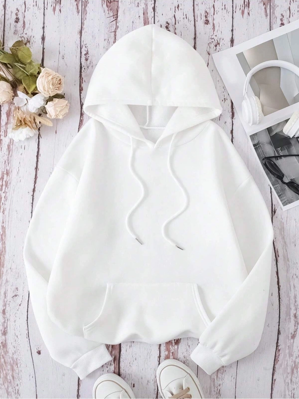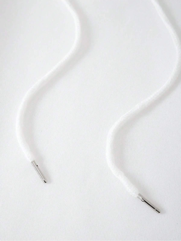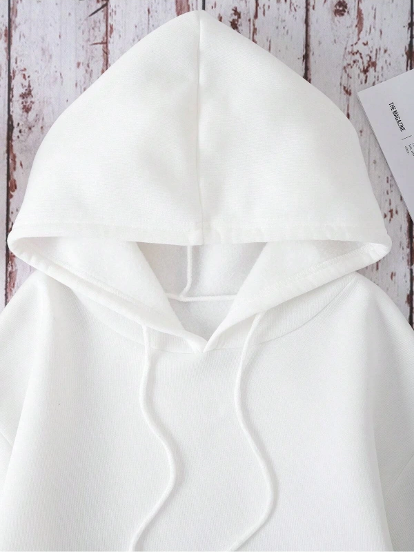 Slogan Grafikli Kanguru Cepli Büzgülü Kapüşonlu Üst Beyaz