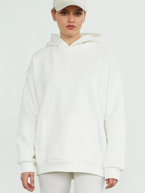 Kadın Ekru Dont Announce Baskılı 3 iplik Şardonlu Kapüşonlu Oversize Salaş Bol Ke Beyaz