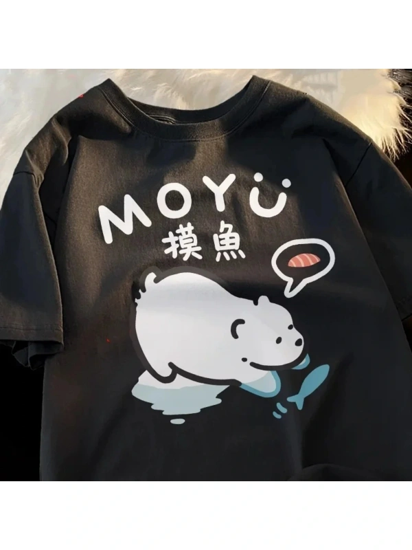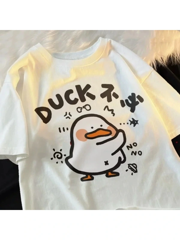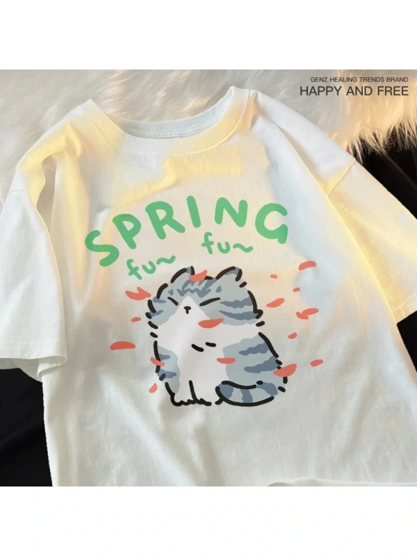 Beyaz Karikatür Sevimli Kedi ve Köpek Desen Eğlenceli Tshirt bol Tees Sokak Serin Kısa
