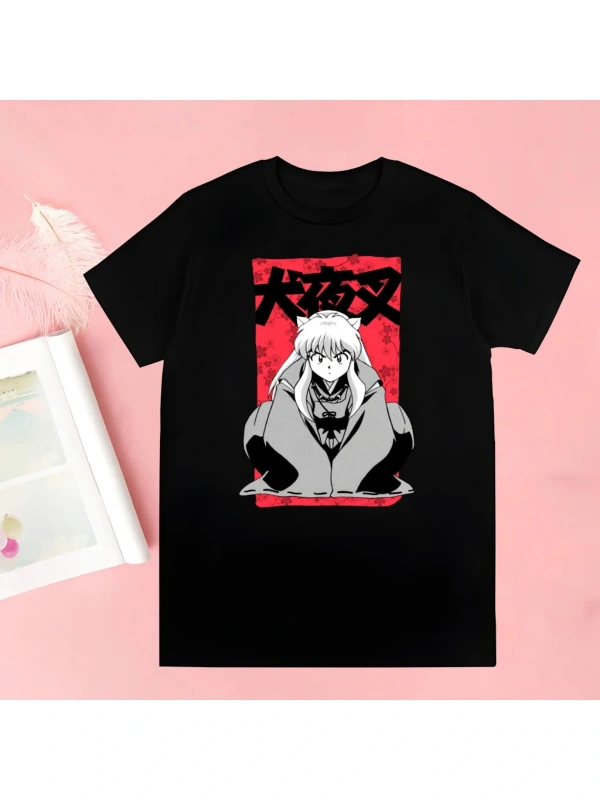 Siyah Inuyasha Yeni Baskı Tshirt Yaz Yenilik