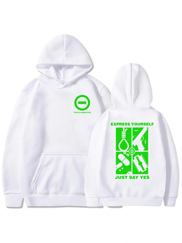 Beyaz Unisex Kendinizi İfade Edin Sadece Evet Söyle Kapüşonlular Tip O Negatif Rock Grubu Uzun Kol