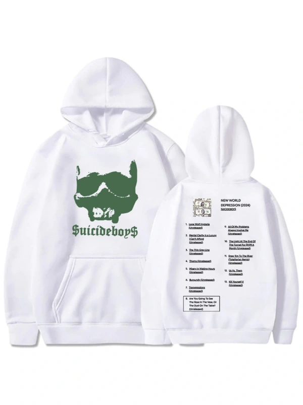 Beyaz Unisex treetweed Grafik Giyim YENI DÜNYA DEPRESSI Albümü Kapüşonlularüz