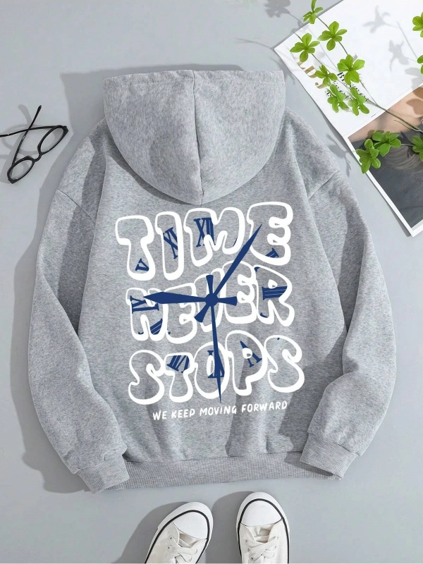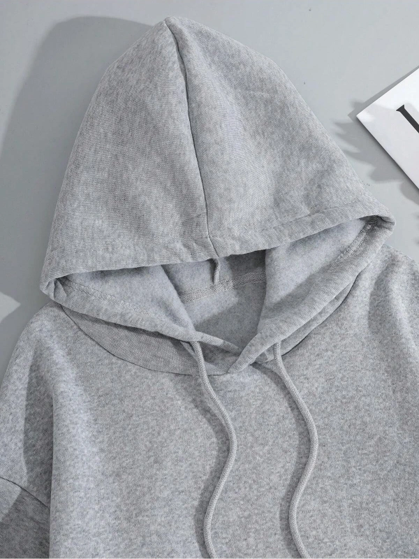Sloganlı Grafik İpli Kapüşonlu Üst Gri